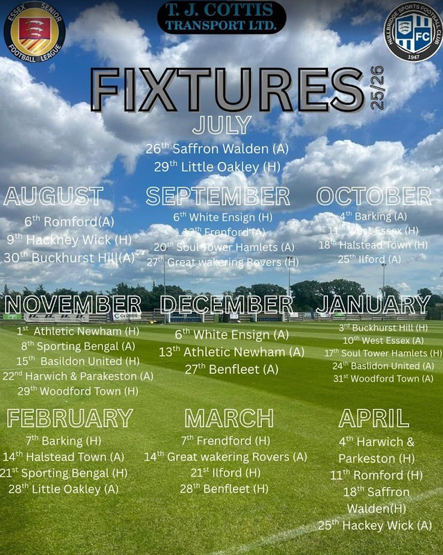 Just in time (well, it does kick off on Saturday!), the ESL fixtures have arrived and are featured below. Also available elsewhere on the website, we'll add in the Cup stuff shortly as well...getting excited, I know I am!