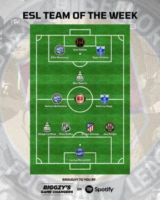 The ESL Team of the Week is out and includes Kelson McFarlane (although he's listed as Nelson!) and Ellis Devereux, who both had outstanding games against White Ensign (and GWR in the Peter Butcher, but I'm not sure if that was taken into account). Well done to both.