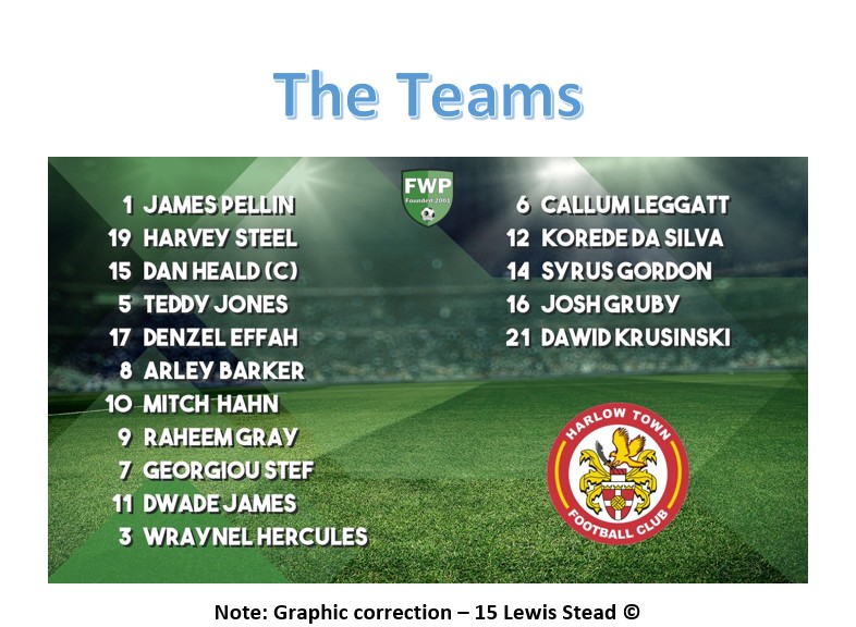 The line-ups hadn't changed too much from the previous meeting, so a tight game was expected, and it started similarly, with Harlow gaining quite a few early corners but not threatening too much. Meanwhile, The Bridge had a couple of Billy Willis free kicks dealt with by the home defence, and The Bridge had a rare corner themselves, but John Sonuga’s header went wide.