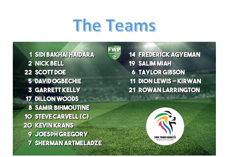 At this point, apologies if I get any names wrong, as it was very difficult to identify players under the Mile End Stadium lights. However, I could see that SOUL were having most of the chances, and Dom was now having to make saves to keep it at 1-0. Artmeladze and Carvell went close and SOUL thought they had gone two up (as did many people, especially the stadium announcer!) when another ball over the top saw one SOUL player who I couldn’t make out (Gregory?) and Artmeladze through and Sheri scored, but it was very tight, but IMHO and the officials, just offside.