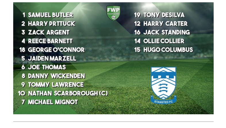 Taylor Jacobi was involved again with a run that finished with a blocked shot, and then he followed that up with a cross that the Stansted defence cleared, but they could do nothing about the next cross from George Briton-Wilkins as Tobias sneaked between defenders and slid home number two. He nearly had number three when Jack Hauser fed Briton-Wilkins, who again found Tobias, but his shot was blocked almost on the line.