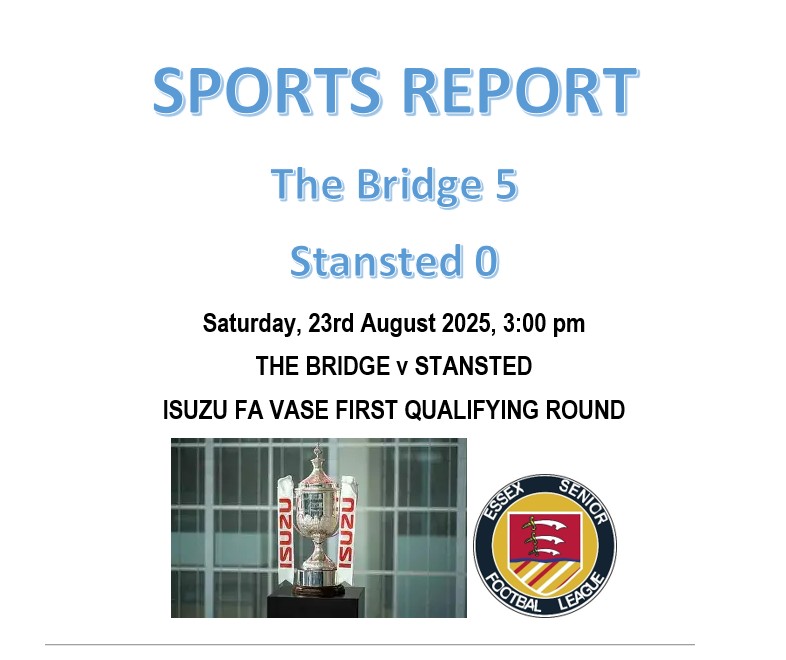 A good day for The Bridge, deserved winners, and a day of good Hullbridge performances, and although Stansted never gave up, they were outclassed on the day, and The Bridge will now meet Harlow Town of the Spartan South Midlands League Premier Division (Step 5) in the next round.