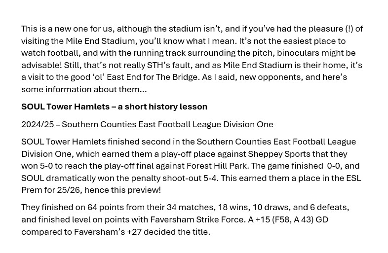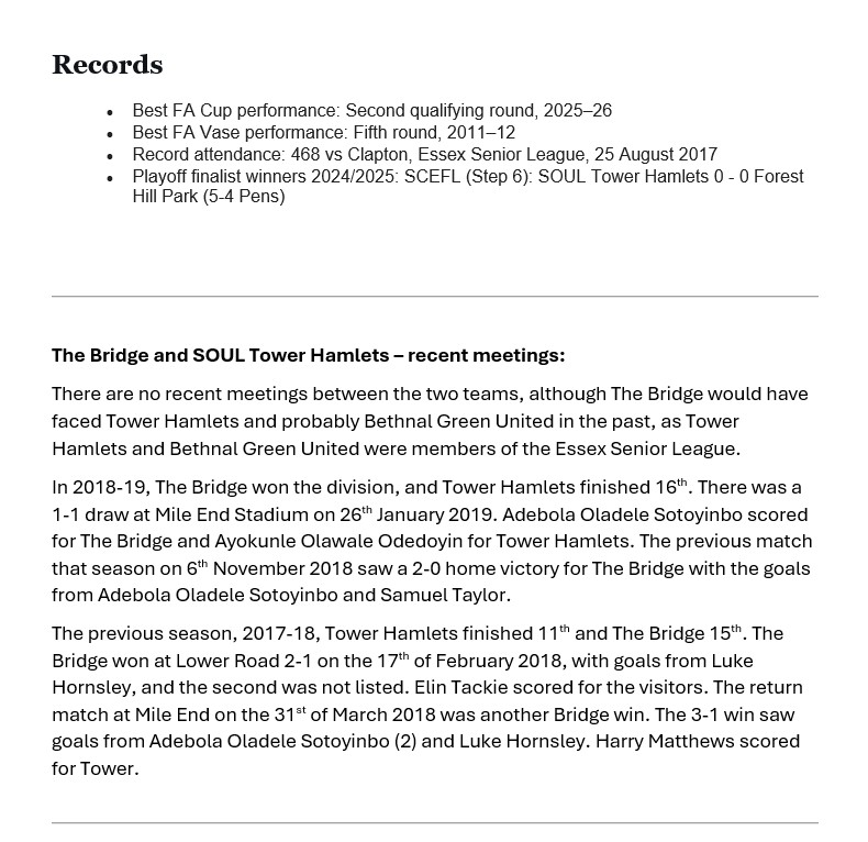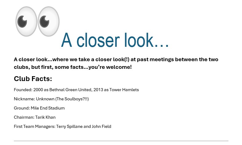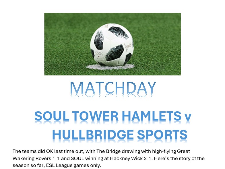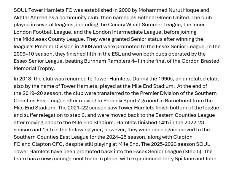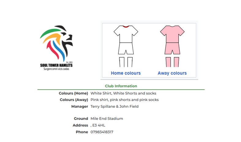 SOUL Tower Hamlets FC, Mile End Stadium, 190 Burdett Road, London E34HL